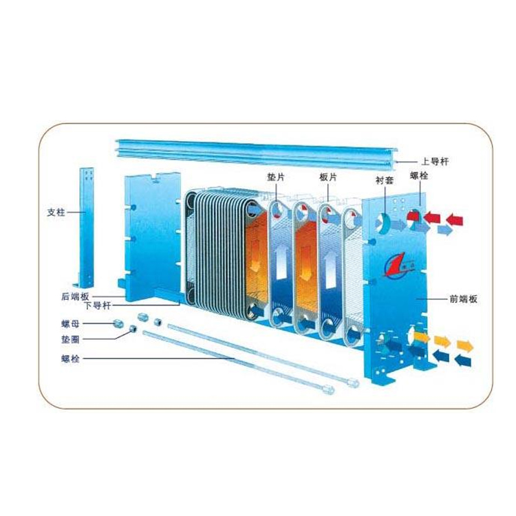 板式換熱器是由具有一定波紋形狀的金屬板片疊裝而成的一種新型高效換熱器,工作介質(zhì)在兩相鄰板片形成的窄小曲折的通道中流過(guò),通過(guò)相隔的板片傳熱。